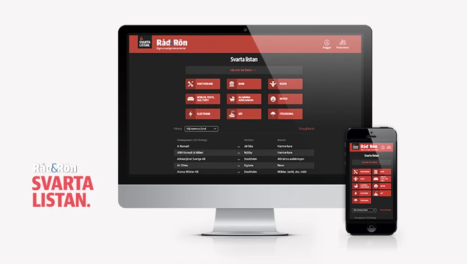 I och med uppdateringen av Råd & Röns svarta listan tänkte vi och Råd & Rön att det var dags för ett litet designlyft. Svarta listan innehåller de företag som struntar i Allmänna reklamationsnämndens beslut. Det kändes helt naturligt att i det här fallet att skruva lite på färgerna så nu är svarta listan just en svart lista.